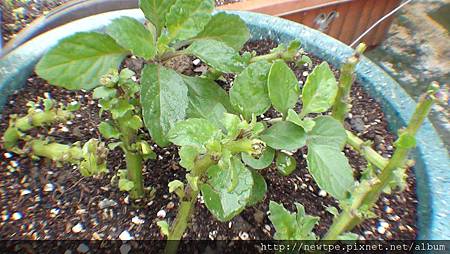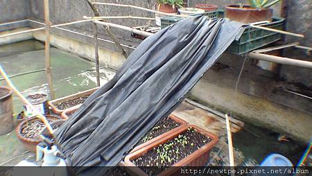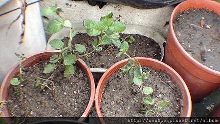 不知道什麼緣故,薄荷枯乾,一付快死的樣子,預設它是被冷風吹的,移到大盆栽後面躲風,希望它能好好活下去。
